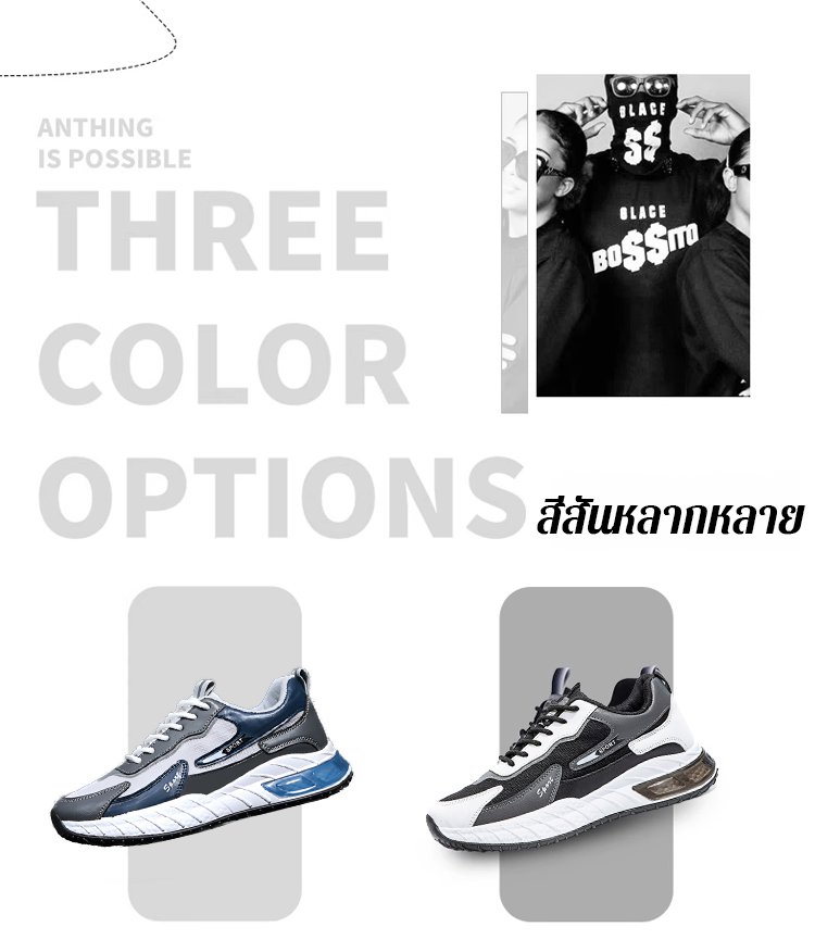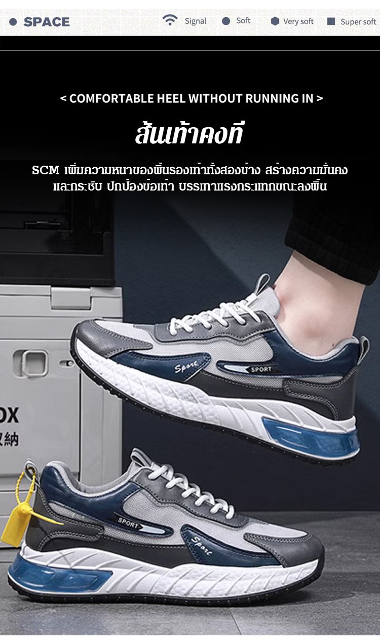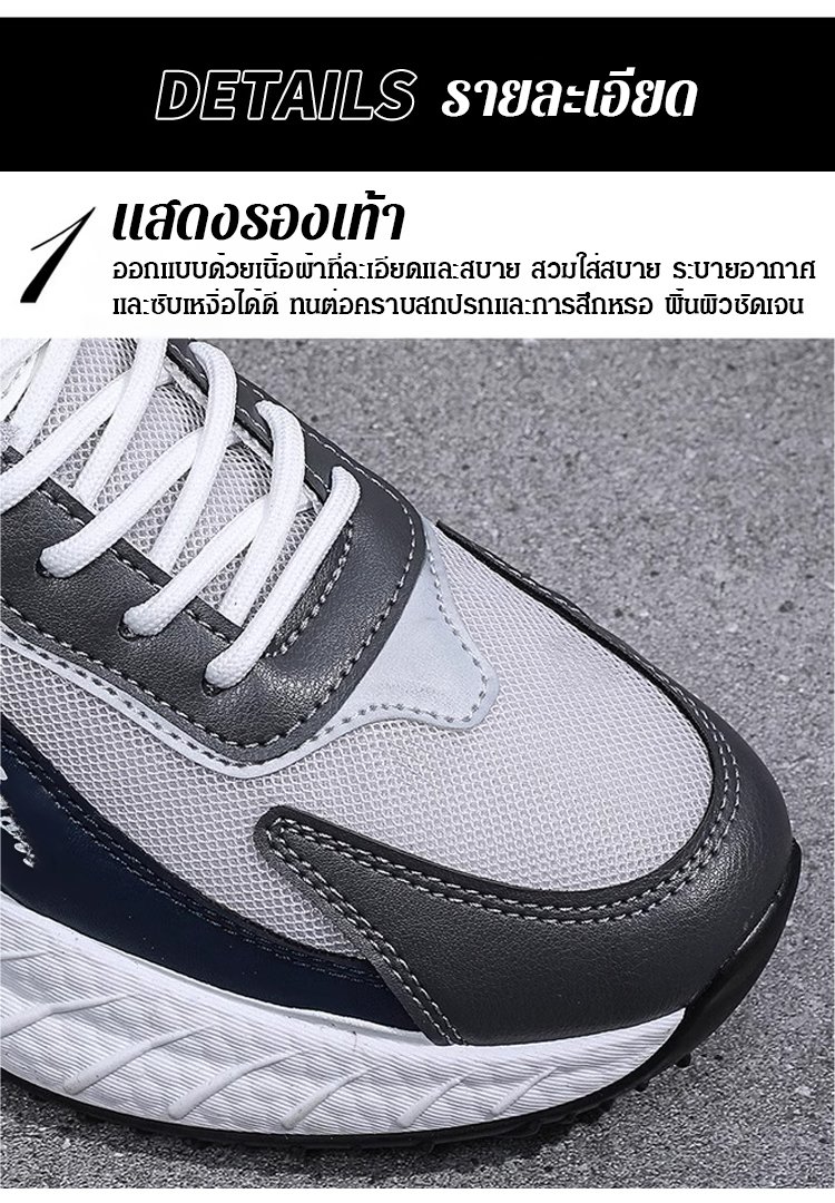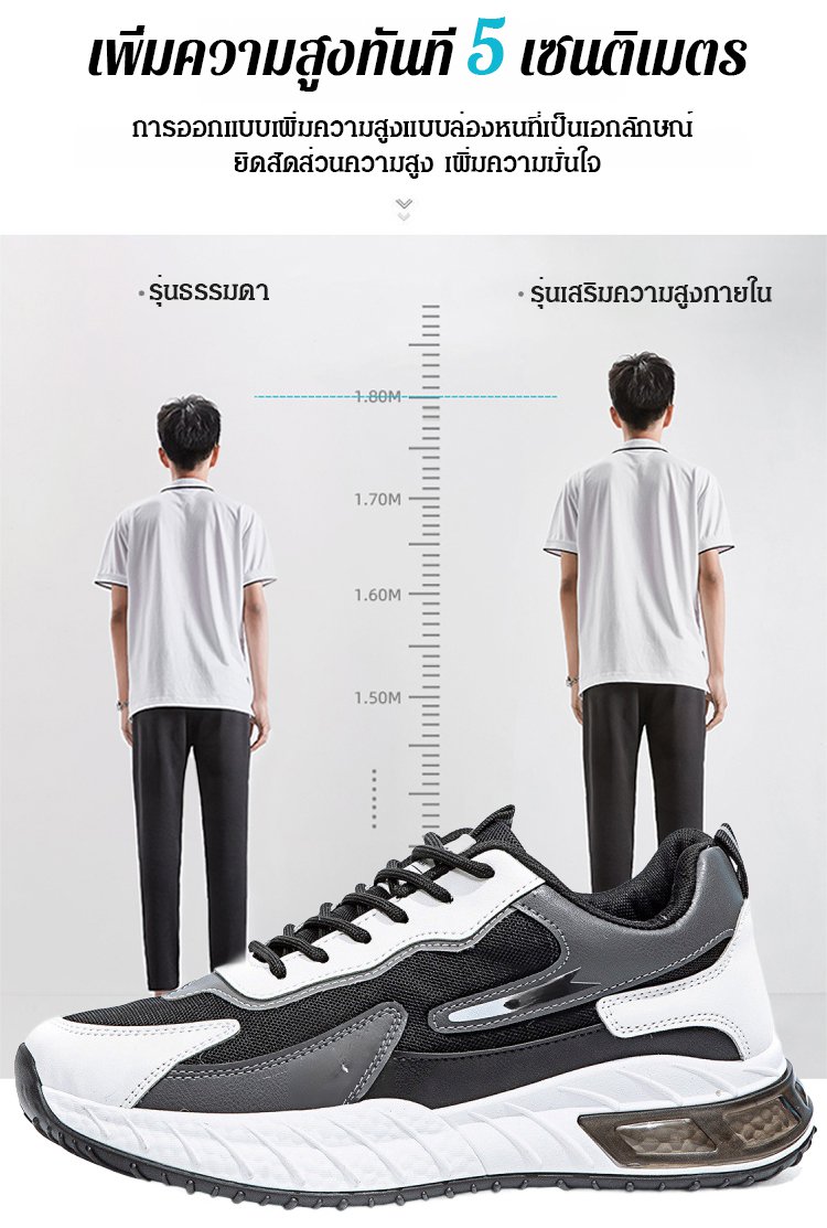 【เพิ่มความสูง 5CM】รองเท้ากีฬาพื้นยาง มีความยืดหยุ่นสูง