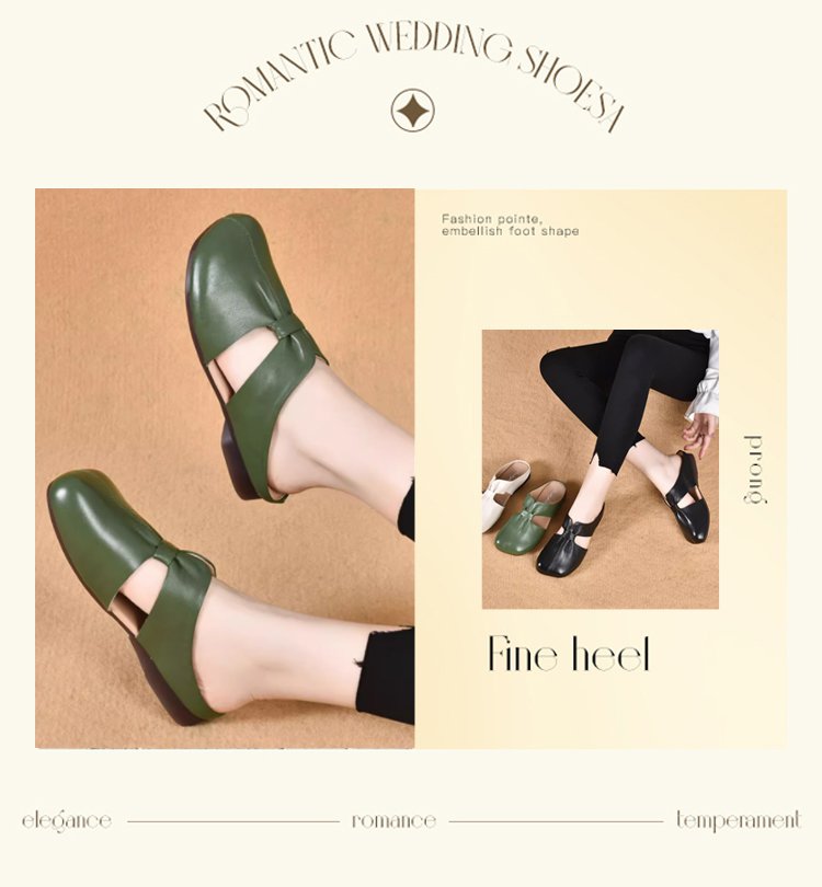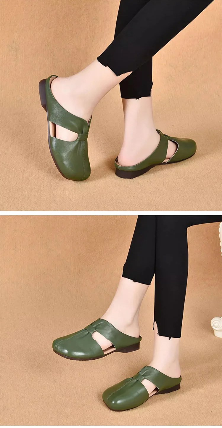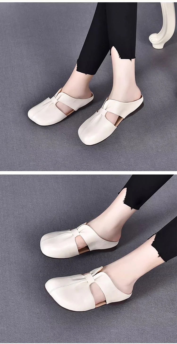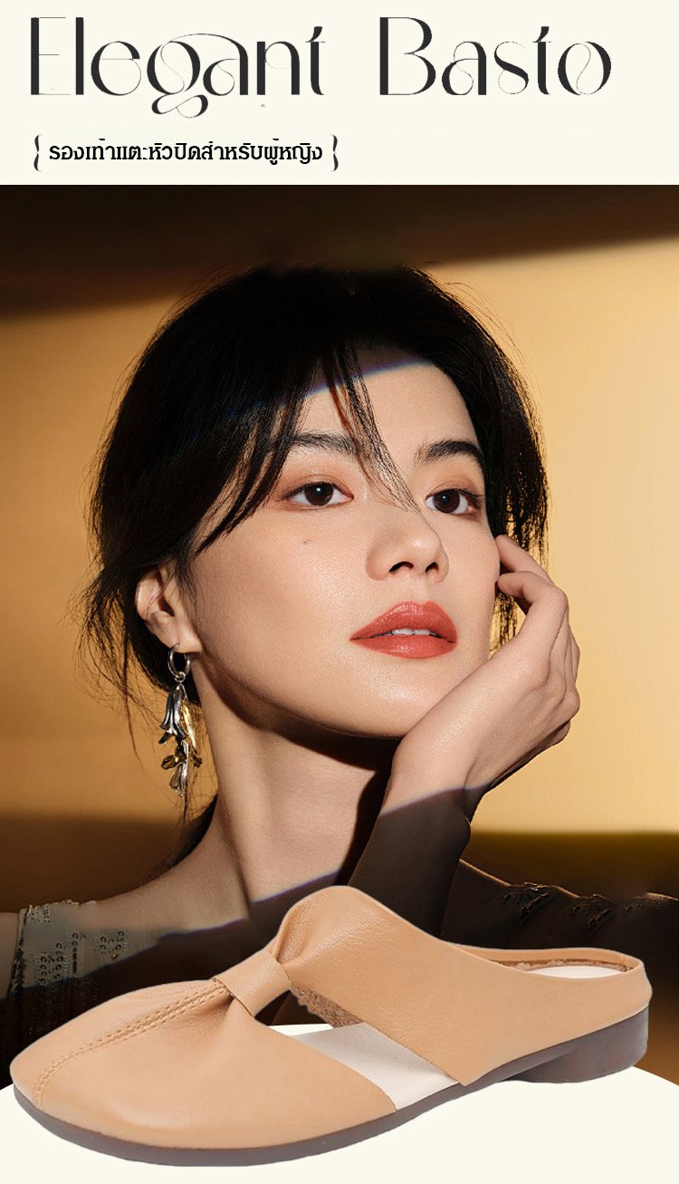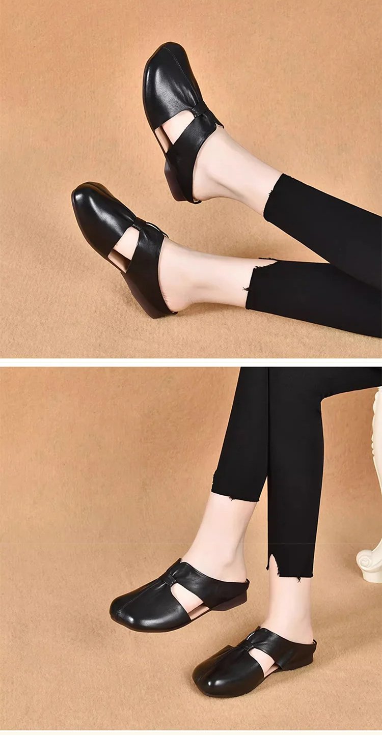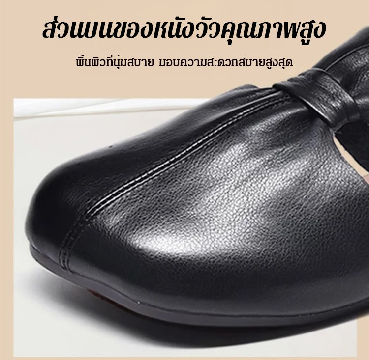 【หนังวัวชั้นแรก】รองเท้าแตะผู้หญิงแบบหัวปิด เปิดส้น